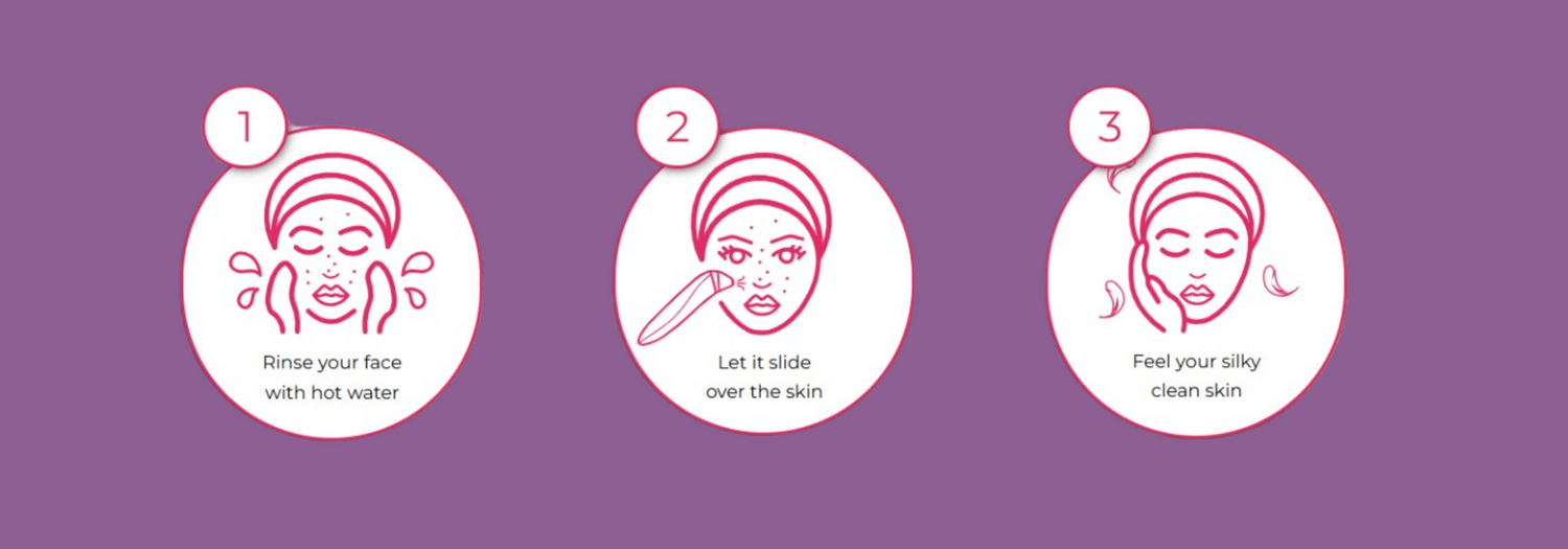 - Testina Esfoliante:Punta metallica ossidata che esfolia le cellule morte. Più efficace degli scrub superficiali perché aspira anche le impurità. Aiuta creme e sieri a essere assorbiti più in profondità.